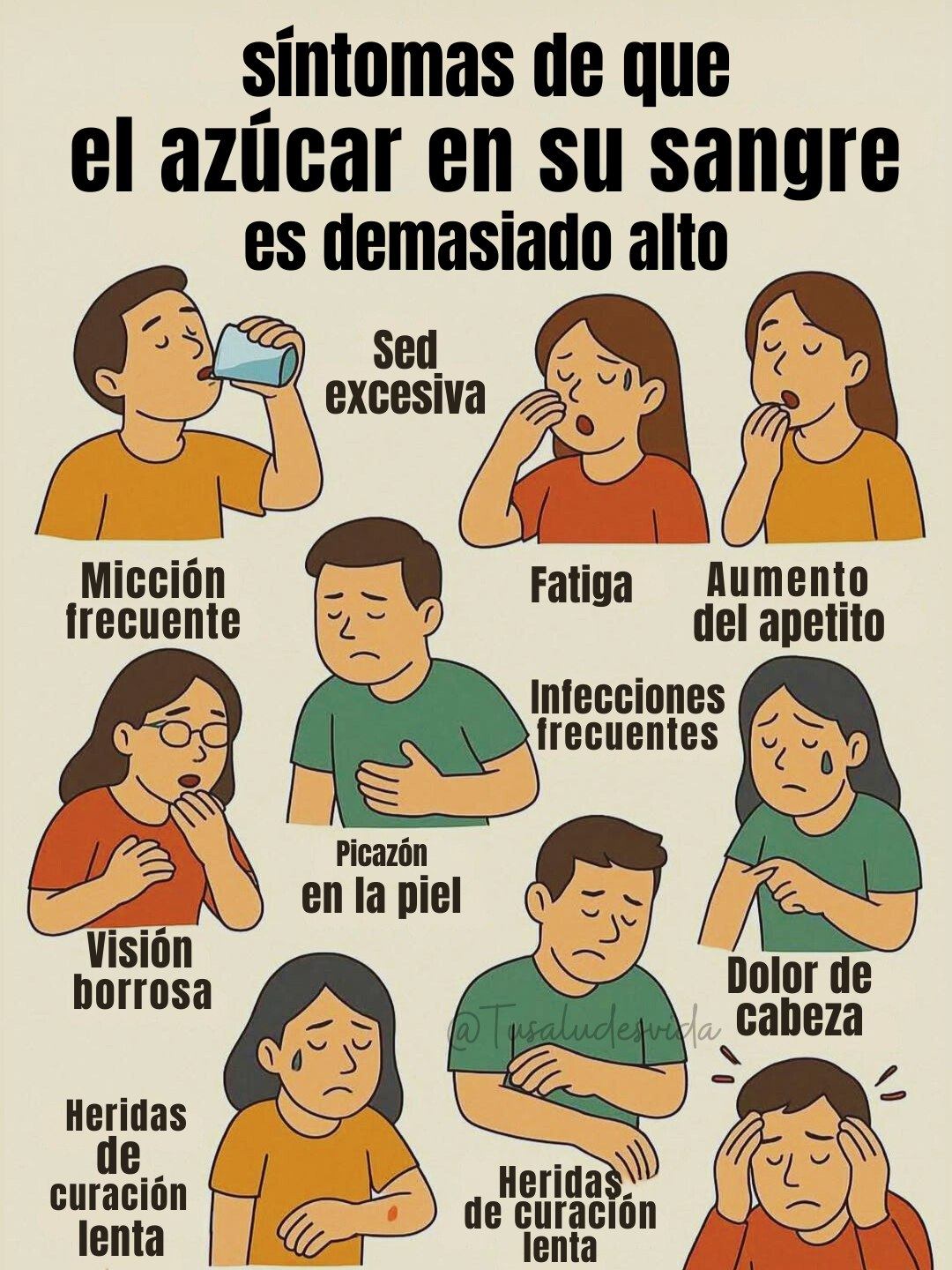 Algunos de los primeros síntomas que se sienten son sed excesiva y un aumento del apetito. La razón de que estos síntomas se producen es porque cuando no hay suficiente insulina para ayudar a regular el exceso de azúcar en la sangre, la glucosa no son absorbidos por las células y su cuerpo piensa que está muriendo de hambre. Otro síntoma es la micción frecuente.