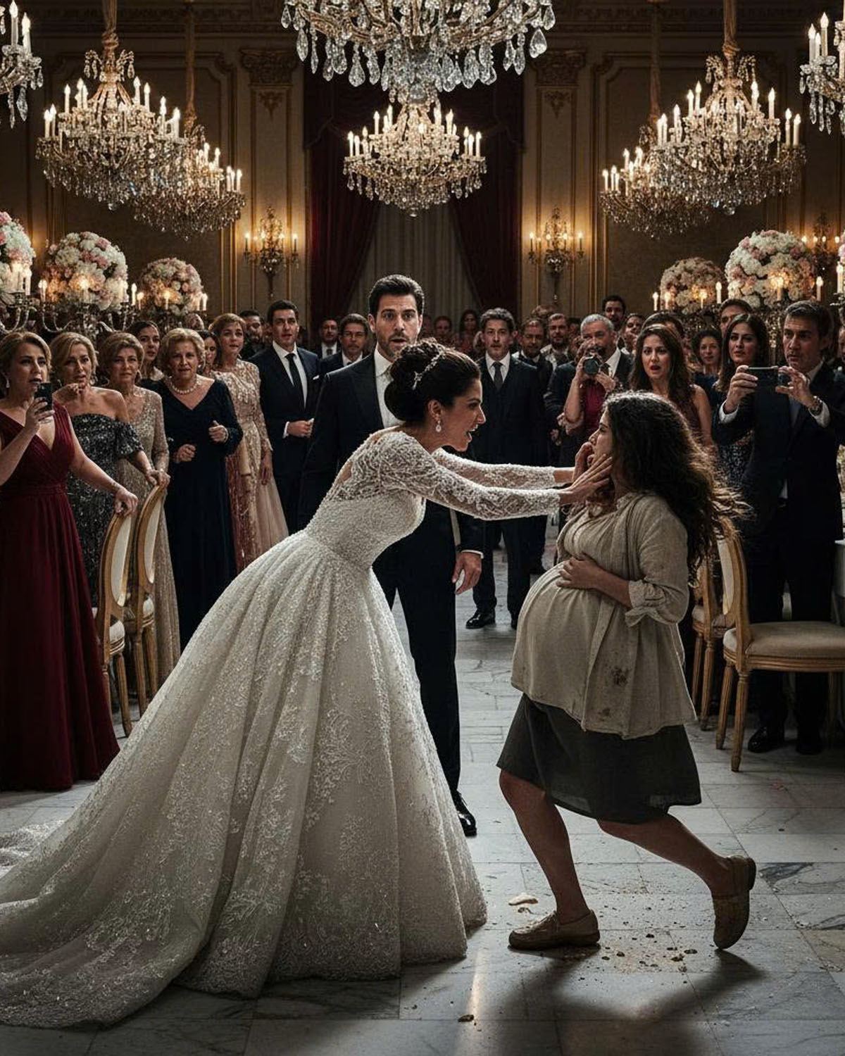 Una novia patea a una pobre mujer embarazada en su boda, sin saber que ella revela un oscuro secreto