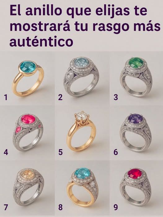 ¿Alguna vez te has preguntado por qué te atrae un determinado anillo? La elección de una joya no es al azar; cada anilloque preferimos puede reflejar aspectos profundos de nuestra personalidad. A continuación, descubre el significado de cada uno de los nueve anillos de la imagen y cuál es tu rasgo más auténtico.