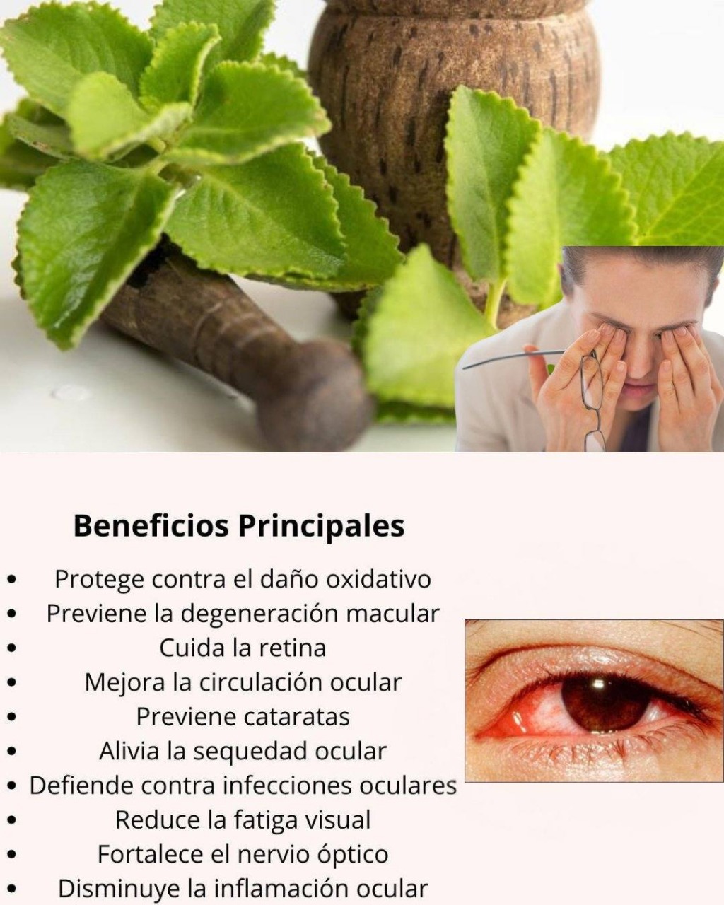 Estimula la circulación sanguínea, lo que favorece la oxigenación del ojo.