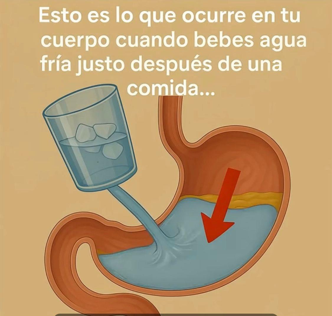 El estómago mantiene una temperatura cercana a 37 °C, por lo que el agua fría se calienta en pocos minutos. No altera la digestión de forma significativa.